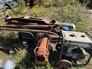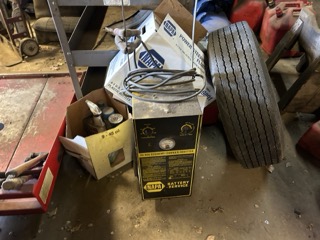 Ingersoll Rand 80 gal Shop Air Compressor, REZNOR Gas Heaters, Coates Rim Clamp Tire Machine, 12 ton Shop Press, V-Twin Air Compressor, Bead Blasting Cabinet, Underlift drain tank, support stands, Electric Lift Platform, Hunter Truck Spin Balancer, Engine Crane Fuel Tank and more